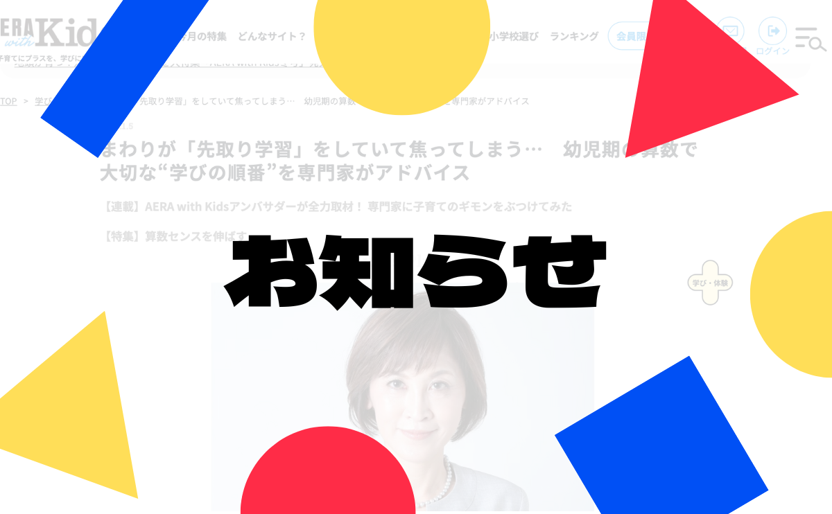 [まわりが「先取り学習」をしていて焦ってしまう… 幼児期の算数で大切な“学びの順番”を専門家がアドバイス]https://dot.asahi.com/aerakids/articles/-/272803